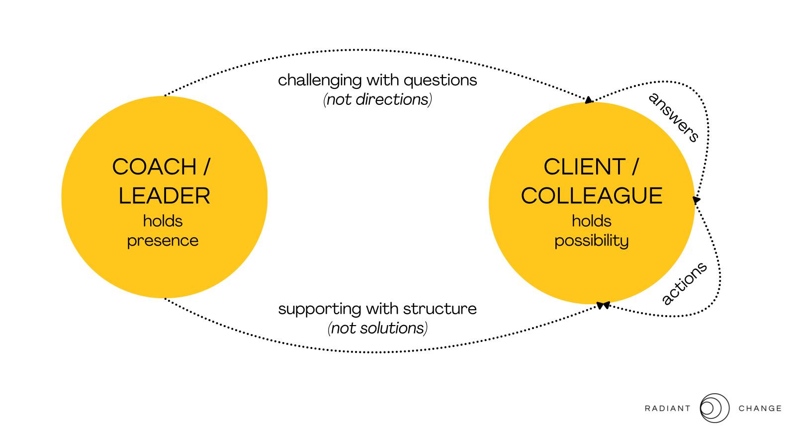 This one goes out to anybody currently looking at a calendar stacked with back-to-back meetings, an inbox with 47 unread messages, and multiple team members waiting for your direction on urgent decisions. I want to tell you that it doesn’t have to be this way, but I doubt you’ll believe me. So instead, let me tell you about the most challenging (and most rewarding) thing I've done in my career. It wasn’t leading a complex organizational transformation or building organizational culture during a global pandemic. It wasn't even starting my own business. The hardest thing I’ve done in my career was learning to coach. To be honest, over the past decade, my coaching training has involved more unlearning than learning. I had to unlearn my consultant's reflex to immediately spot problems and deliver solutions. The addiction to being the person with all the answers. The pressure to project confidence and certainty at all times. For years, my job had been to know, to solve, to do. And I was exceptional at it. What I didn't realize was how this approach had been limiting my leadership. As I learned to not know, to not solve, to not do for my coaching clients, I discovered the core skill I'd been missing as a leader: the ability to develop others, not just direct them. For your sake, but also for your team’s and your business’s, it’s time to start leading like a coach. It’s time to scale yourself. “When you build a coaching habit, you can more easily break out of three vicious circles that plague our workplaces: creating overdependence, getting overwhelmed and becoming disconnected.”―Michael Bungay Stanier, The Coaching Habit: Say Less, Ask More & Change the Way You Lead Forever (I give this A+ book to new managers but it’s eye-opening for CEOs too) SUPPORT X CHALLENGEScale YourselfCoaching is the second practice of transformational leadership. Like challenging (last month) and co-creating (next month), coaching requires us to step out of our own story, our own self-orientation, and hold space for the thoughts, feelings and ideas of others. And in the case of coaching, we are also holding space for their growth. This is as strategic as it is generous—it’s how we scale ourselves. Think of it this way: Your team member comes to you with a problem, and you tell them how to solve it. Everybody’s happy, right? But the ROI of that conversation was 1:1—one unit of your time created one unit of value. But when you lead like a coach—not giving answers or advice, but asking questions that inspire new insights and understanding in your colleague—that unit of time has just become more valuable, possibly 4:1 or 6:1. That person may now be able to solve this problem for themselves in the future, saving both of you time and energy many times over. Your investment in developing others multiplies your impact exponentially. And just imagine what it can do for the gridlock in your inbox. But it’s not what most of us are used to. This is why it’s a practice—we have to be intentional about showing up in a new way. Like I said, it’s hard. Here’s a sketch I drew when I found myself struggling to get out of fixer mode. It helped me clarify for myself what was mine and what belonged to my clients. Now it’s the foundation for the Radiant Coaching Model: A coach holds presence. The practice is not to solve problems, but to be fully present with the person in front of you. To see them clearly—not as a problem to be solved, but as someone with untapped possibility. When you focus on presence, you create the space and psychological safety that allows real thinking to happen. You also have an easier time integrating the next two parts of the job… A coach challenges with questions, not directions. Instead of telling someone what to do, ask questions that stretch their thinking. Questions that help them see angles they hadn't considered. Questions that push them slightly beyond their comfort zone—not into panic, but into growth. But questions alone are likely to leave a stressed-out colleague feeling confused or alone, so… A coach supports with structure, not solutions. While you invite them to expand their thinking with powerful questions, you can also provide structures and constraints that focus thinking on what matters most. This is important: You’re providing a framework for productive thinking, not the content of the thinking. The insights, answers, and actions belong to them. When you practice coaching, you get to be what I playfully call a “lazy leader”—doing less so others have the room to do more. I realize this sounds both appealing and terrifying, whether you have perfectionist, know-it-all or people pleaser tendencies. (Or if you’re like me, a mash-up of all three.) But coaching isn't about abdicating responsibility or leaving people stranded. It's about recognizing that when you solve every problem, you rob others of the opportunity to grow. When you provide every answer, you create dependency instead of capability. The person across from you holds the possibility. Your job as a leader is to help them see it. the coach’s toolsself-awareness In Practice: Leading Like a CoachChoose one recurring conversation where you typically provide answers—maybe it's weekly check-ins with a direct report or project planning sessions with the team. This August, experiment with leading these conversations like a coach. Instead of coming with solutions, come with questions. Instead of directing, try developing. Keep it simple. Start by asking one question, and make sure it’s an open question that can’t be answered with yes or no. Also, avoid que-ggestions like “What if we did X?” Keep it open: “What ideas do you have?” Then listen. Really listen. This is where your presence becomes key. If you find your mind wandering, gently bring it back to the person you’re with. Pay attention to what they’re saying, how they’re saying it, and what they might no
